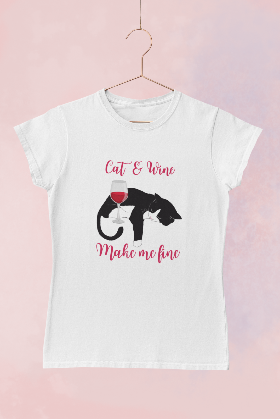 Dámské tričko s kvalitním potiskem Cat and wine make me fine