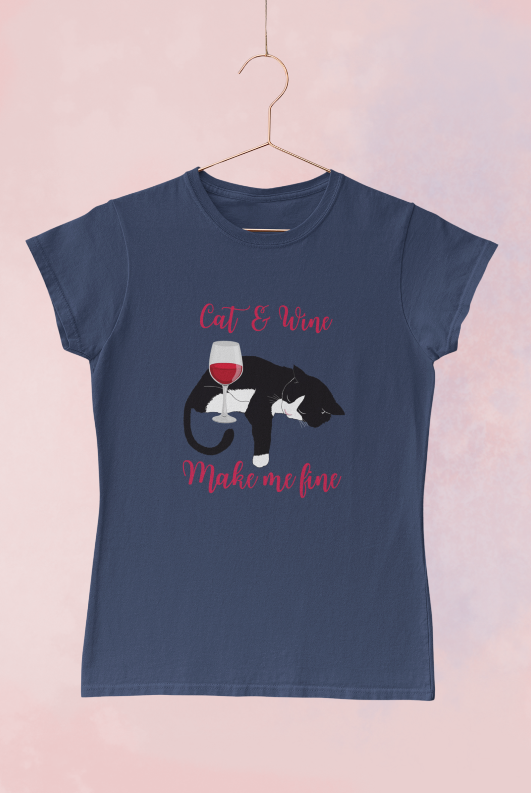 Dámské tričko s kvalitním potiskem Cat and wine make me fine