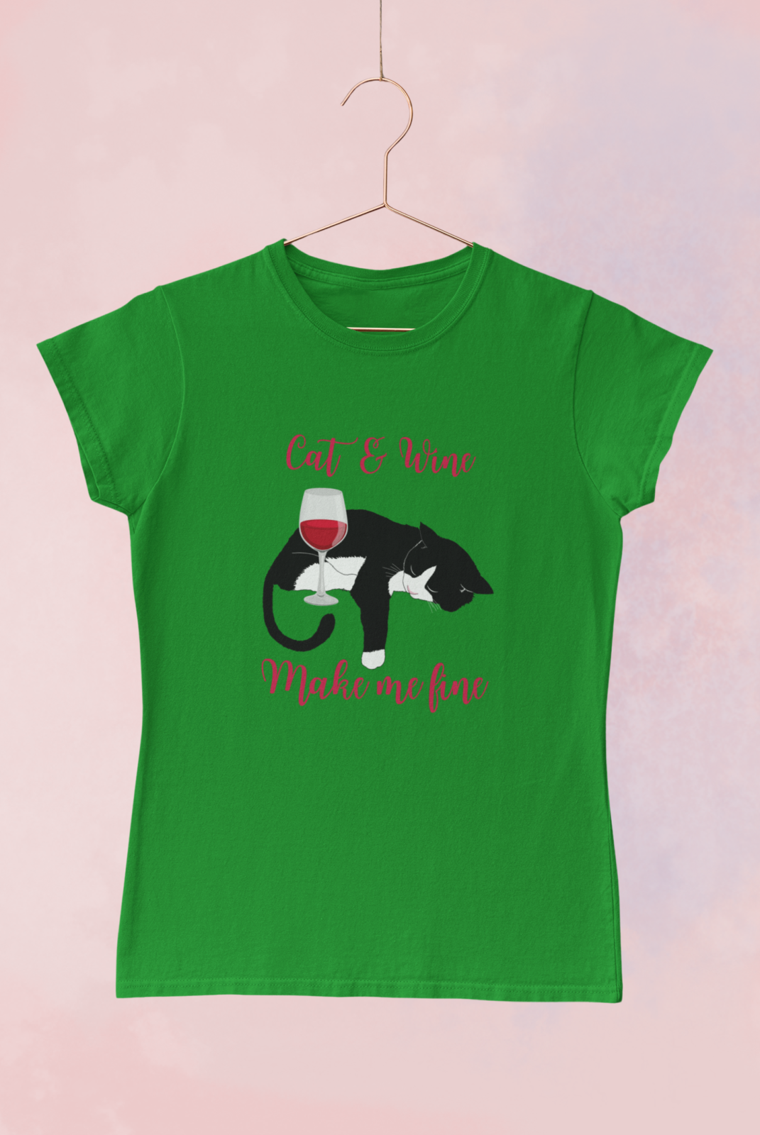 Dámské tričko s kvalitním potiskem Cat and wine make me fine