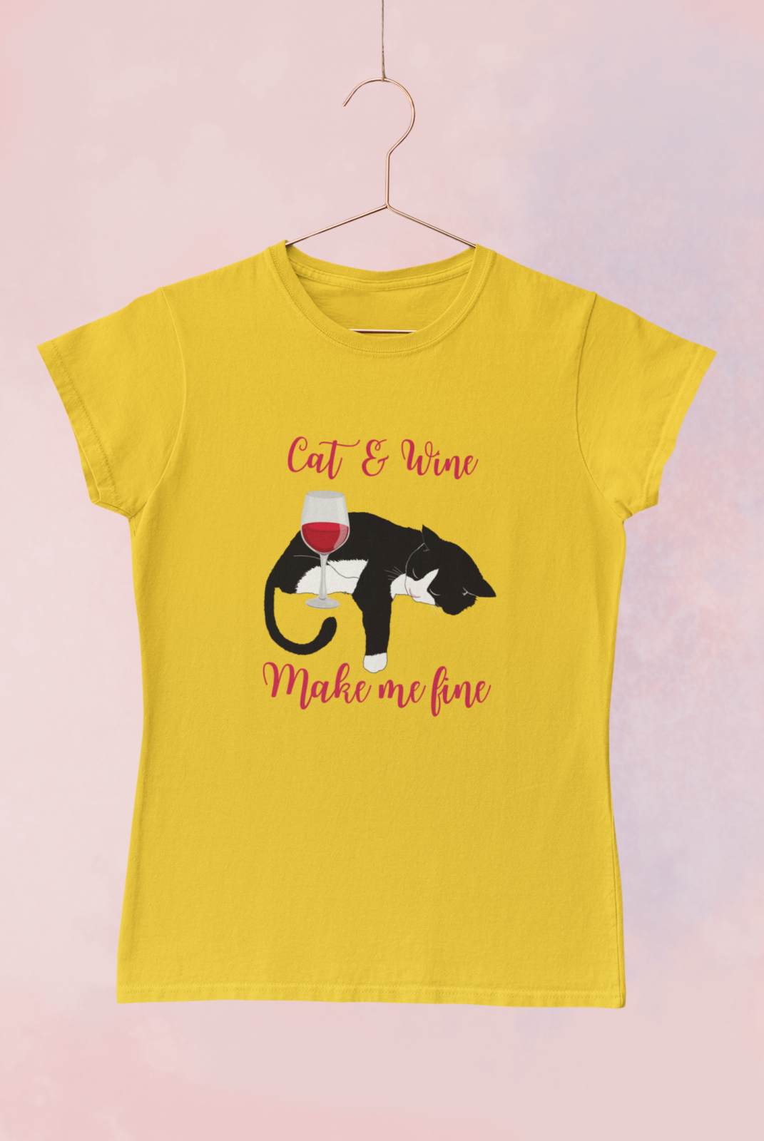 Hlavní stránka (630) > Alkohol motivy (439) > trička (439) > Dámské (349) > Cat and wine - Dámské tričko - Žlutá XL