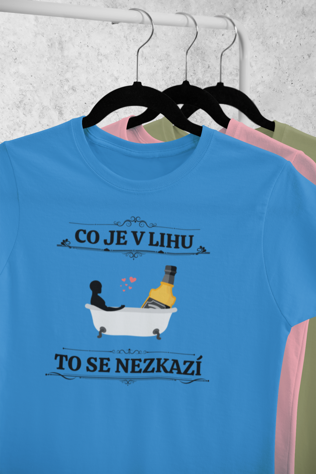 Dámské tričko s kvalitním potiskem Co je v lihu, to se nezkazí