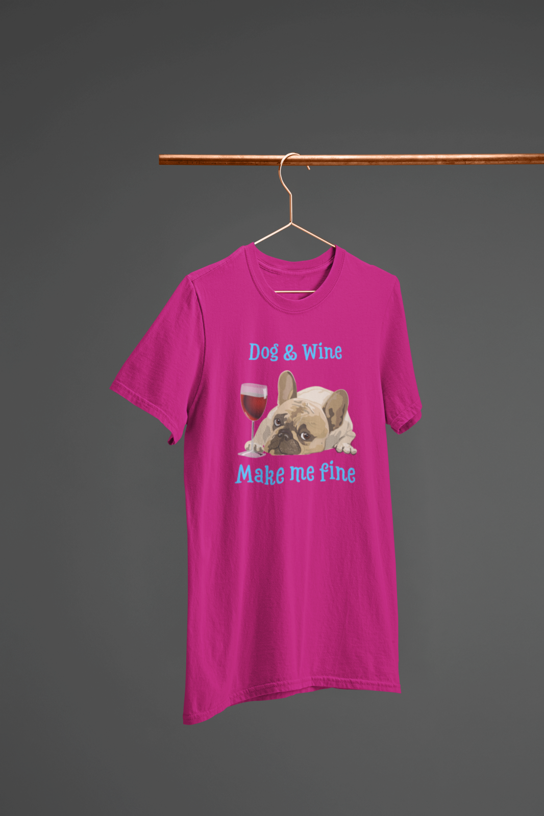 Dámské tričko s kvalitním potiskem Dog and wine, make me fine