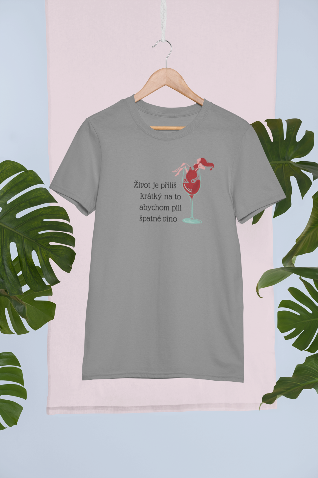 Dámské tričko s kvalitním potiskem Život je příliš krátký na to, abychom pili špatné víno