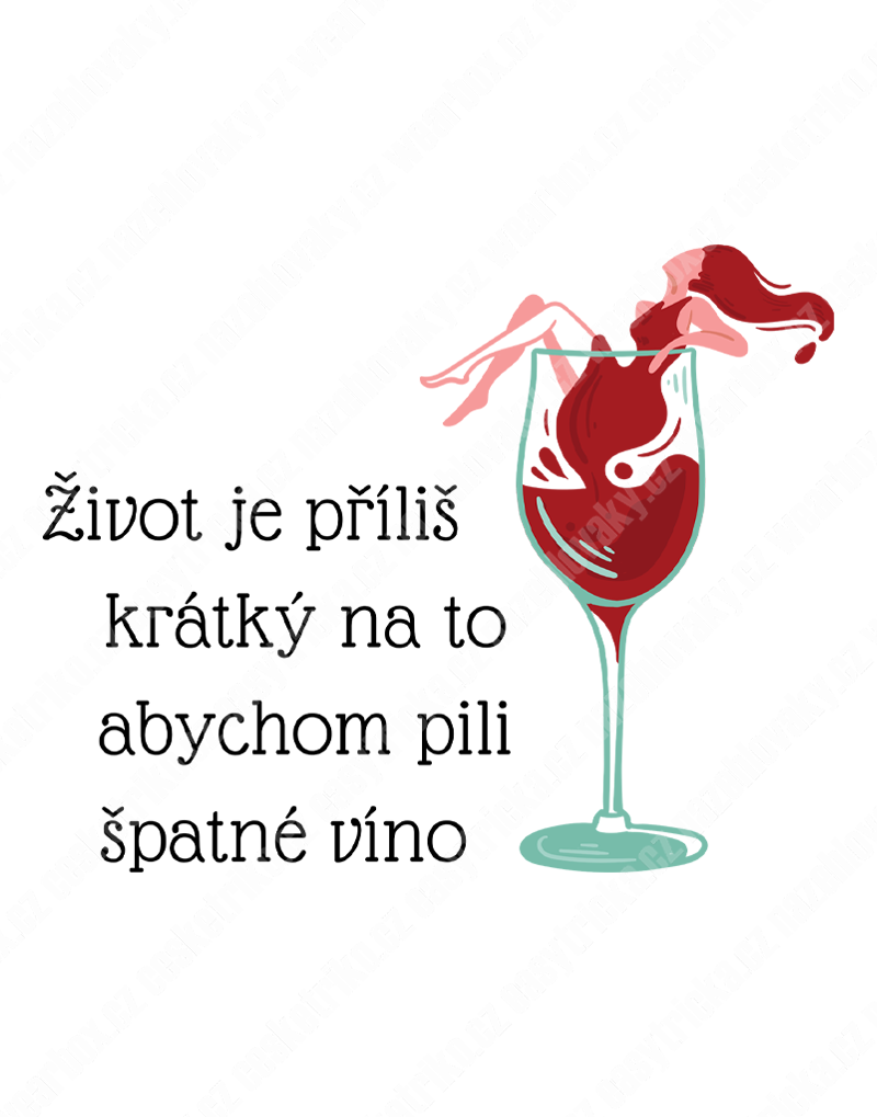 Dámské tričko s kvalitním potiskem Život je příliš krátký na to, abychom pili špatné víno