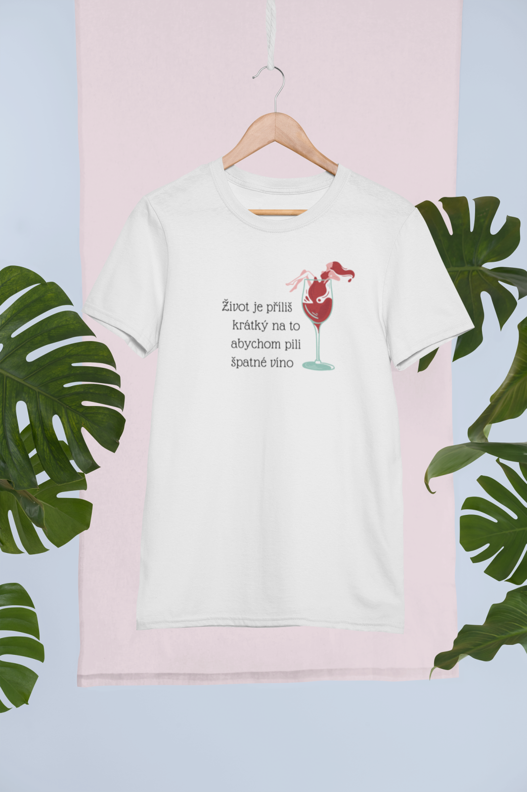 Dámské tričko s kvalitním potiskem Život je příliš krátký na to, abychom pili špatné víno
