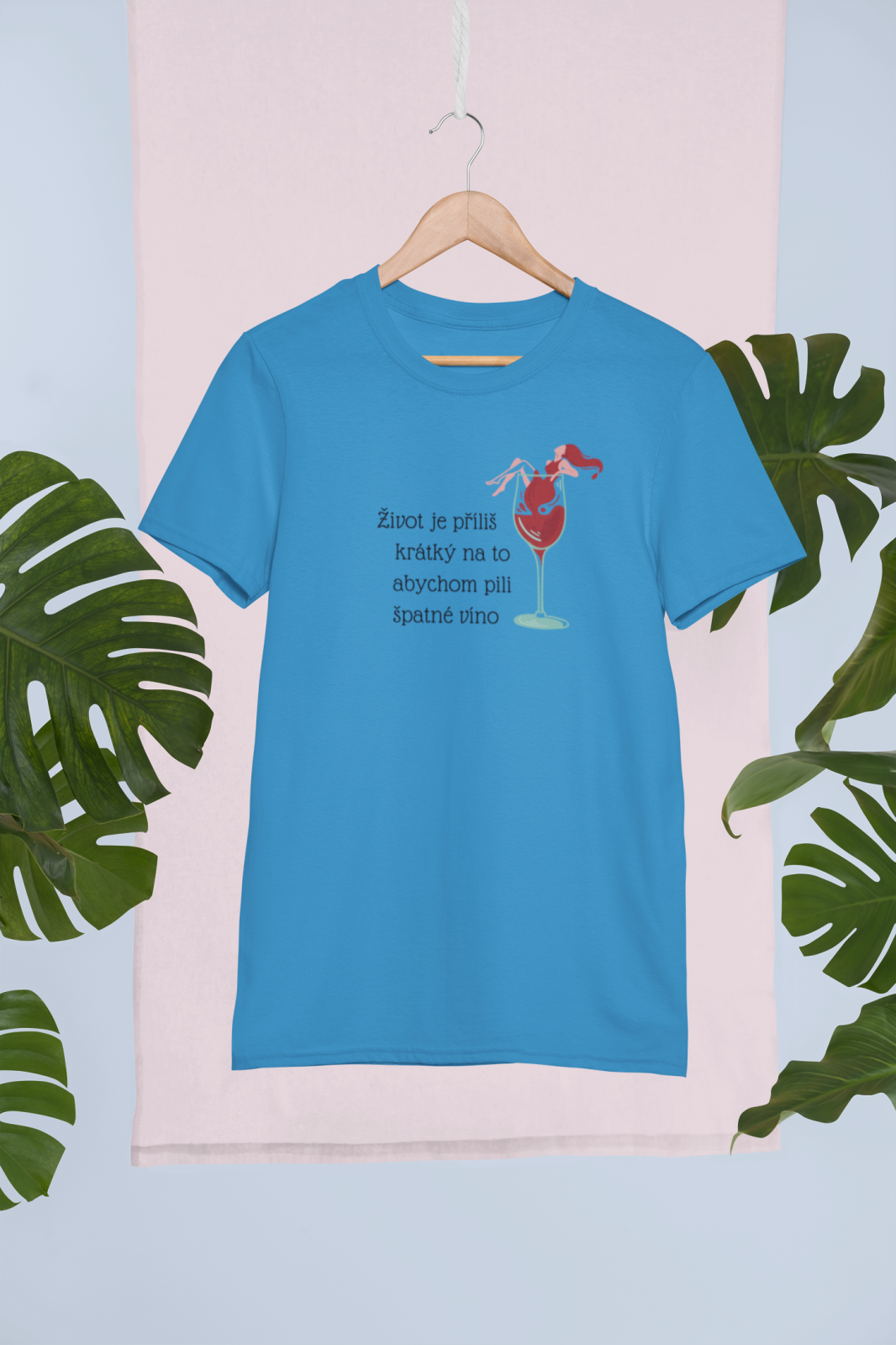 Dámské tričko s kvalitním potiskem Život je příliš krátký na to, abychom pili špatné víno